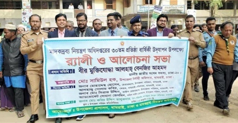 ধামরাইয়ে মাদকদ্রব্য নিয়ন্ত্রণ অধিদপ্তরের ৩০তম প্রতিষ্ঠাতা বার্ষিকী উপলক্ষে র্যালি ও আলোচনা সভা অনুষ্ঠিত হয়েছে। বৃহস্পতিবার (০২ জানুয়ারি) ধামরাই উপজেলা প্রশাসন ও মাদকদ্রব্য নিয়ন্ত্রণ অধিদপ্তরের উদ্যোগে এ আয়োজন করা হয়।