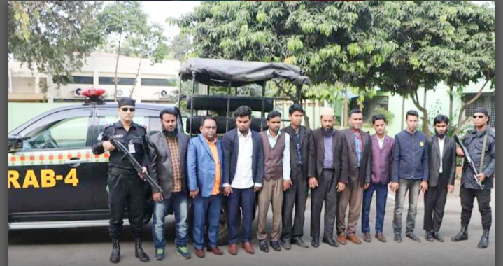 আটক ব্যক্তিরা হলেন- ঢাকার ধামরাই থানার ওয়ালদী গ্রামের মৃত সানাউল্লাহর ছেলে মো. আমানুল্লাহ (৩৯), ঠাকুরগাঁও জেলার পীরগঞ্জ থানার পালিগাঁও গ্রামের কোরবান আলীর ছেলে মো. শারিয়াতুন নবী সবুজ (৩৬), রংপুর জেলার কোতোয়ালি থানার ধাপকেল্লাবন্দ গ্রামের সামসুল হকের ছেলে মাহমুদুল হাসান কলি (৩২), চাঁদপুর জেলার শ্রাবন্তী থানার কাজীরকাপ গ্রামের আবুল কালামের ছেলে কাজী ফখরুল ইসলাম (২৯), ঢাকা জেলার আশুলিয়া থানার ভেন্দাবর নতুনপাড়া গ্রামের রেকাইত আলীর ছেলে মো. সবির হোসেন (৪৩), সিরাজগঞ্জ জেলার কাজীপুর থানার যুক্তিগাছা গ্রামের মো. জয়নাল উদ্দিনের ছেলে মো. জাহাঙ্গীর আলম (৩০), টাঙ্গাইল জেলার মির্জাপুর থানার আরোহা গ্রামের মৃত আব্দুল মান্নান মিয়ার ছেলে মো. সাইফুল ইসলাম (৩০), গাইবান্ধা জেলার সুন্দরগঞ্জ থানার ভাটি বোচাগাড়ি গ্রামের মো. রাজা মিয়ার ছেলে মো. আইয়ুব (২৯), চাঁদপুর জেলার ফরিদগঞ্জ থানার পশ্চিমহাসা গ্রামের মো. আব্দুল মতিনের ছেলে মো. হারুন অর রশিদ (৩৩) ও সিরাজগঞ্জ জেলার শাহজাদপুর থানার আগবাংলা গ্রামের মো. রানু মোল্লার ছেলে মো. দুলাল হোসেন (৩৫)।