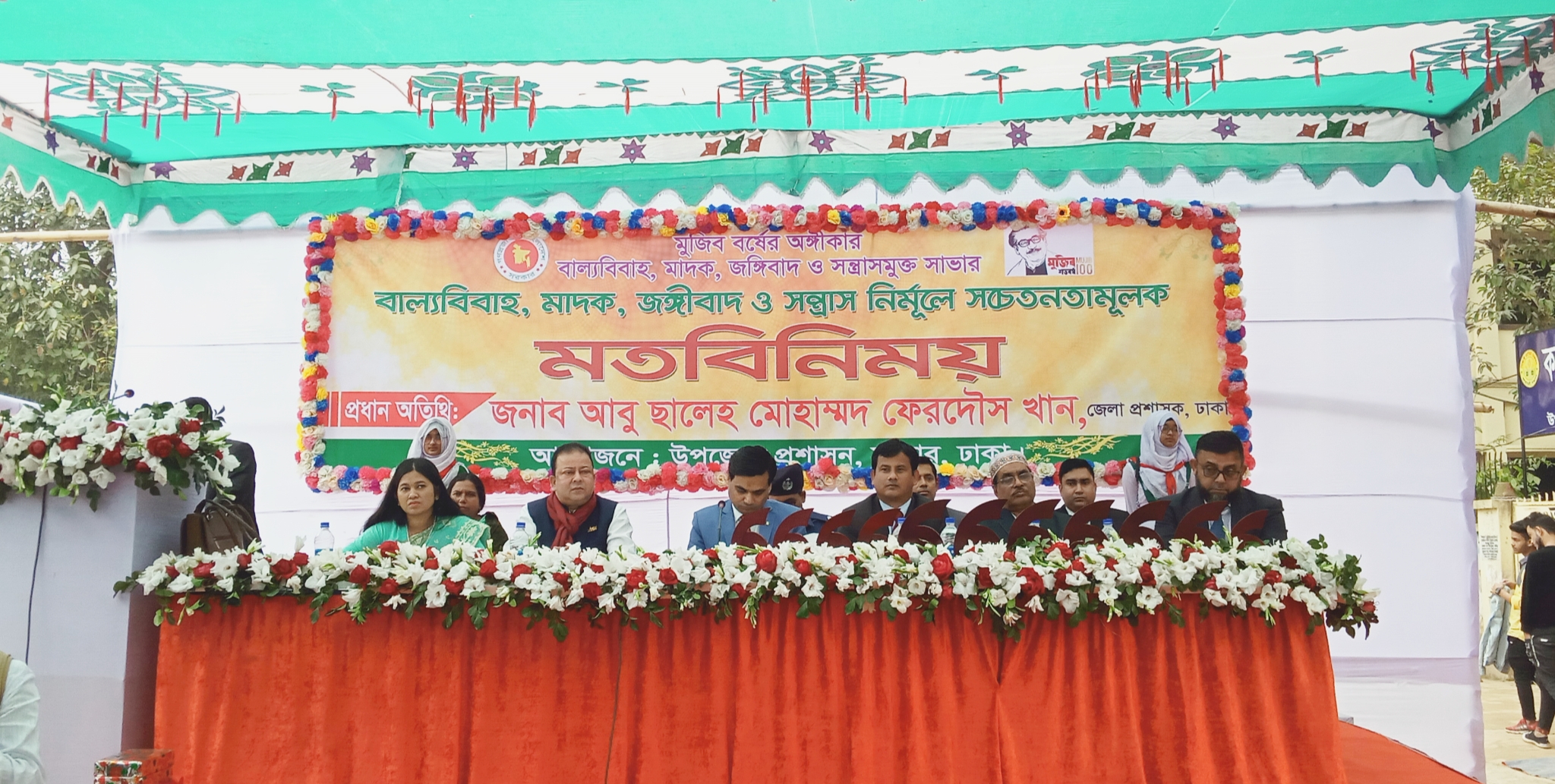 মুজিব বর্ষে অঙ্গীকার নিয়ে সাভারে বাল্যবিবাহ, মাদক,জঙ্গীবাদ ও সন্ত্রাস নির্মূলে সচেতনমূলক মত বিনিময়সভা অনুষ্ঠিত