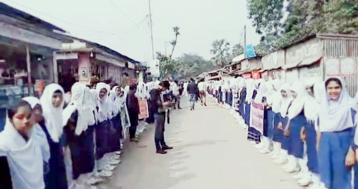 ২৬ জানুয়ারি রবিবার দুপুরে বিদ্যালয় সংলগ্ন গকুলনগর বাজারের সামনে রাস্তায় এই মানববন্ধন অনুষ্ঠিত হয়।