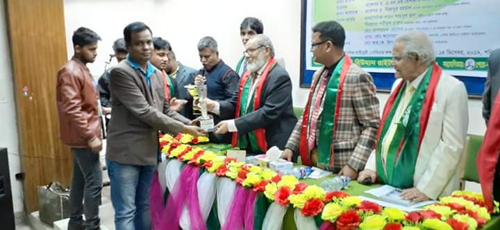 সম্মাননা পেয়ে সকলের প্রতি শ্রদ্ধা ও কৃতজ্ঞতা জ্ঞাপন করছেন শ্রমিক নেতা রফিকুল ইসলাম সূজন।