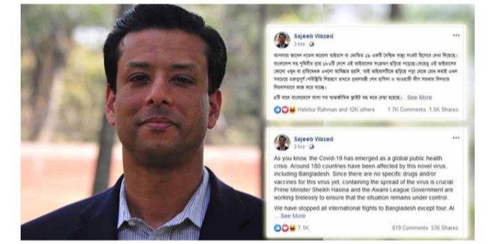 জয় লিখেছেন, ‘‘আপনারা জানেন নভেল করোনা ভাইরাস বা কোভিড ১৯ একটি বৈশ্বিক স্বাস্থ্য সংকট হিসেবে দেখা দিয়েছে। বাংলাদেশ সহ পৃথিবীর প্রায় ১৮০টি দেশে এই ভাইরাসের সংক্রমণ ছড়িয়ে পড়েছে। যেহেতু এই ভাইরাসের কোনো ওষুধ বা প্রতিষেধক এখনো আবিষ্কার হয়নি, তাই ভাইরাসটিকে ছড়িয়ে পড়া থেকে রোধ করাই এখন সবচেয়ে গুরুত্বপূর্ণ। পরিস্থিতি নিয়ন্ত্রণে রাখতে প্রধানমন্ত্রী শেখ হাসিনা ও আওয়ামী লীগ সরকার দিনরাত নিরলসভাবে কাজ করে যাচ্ছে।