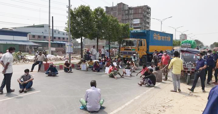 ঢাকা-আরিচা মহাসড়ক অবরোধ করে বাসের প্রায় ২ শতাধিক শ্রমিকরা সাভারে মহাসড়ক অবরোধ করে ত্রান ও আর্থিক সহায়তা প্রদানের দাবী