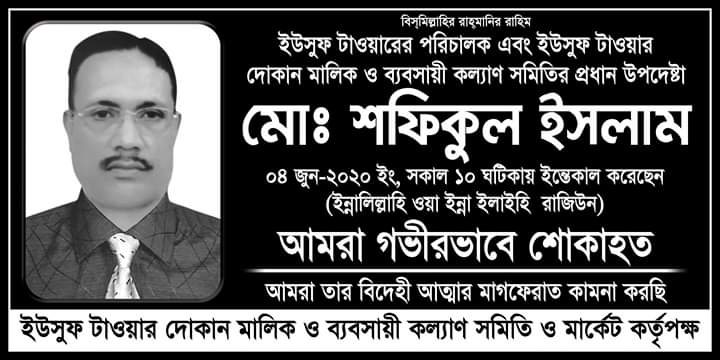 সুগন্ধা সুপার মার্কেটের মালিক শফিকুল ইসলাম সফির মৃত্যু
