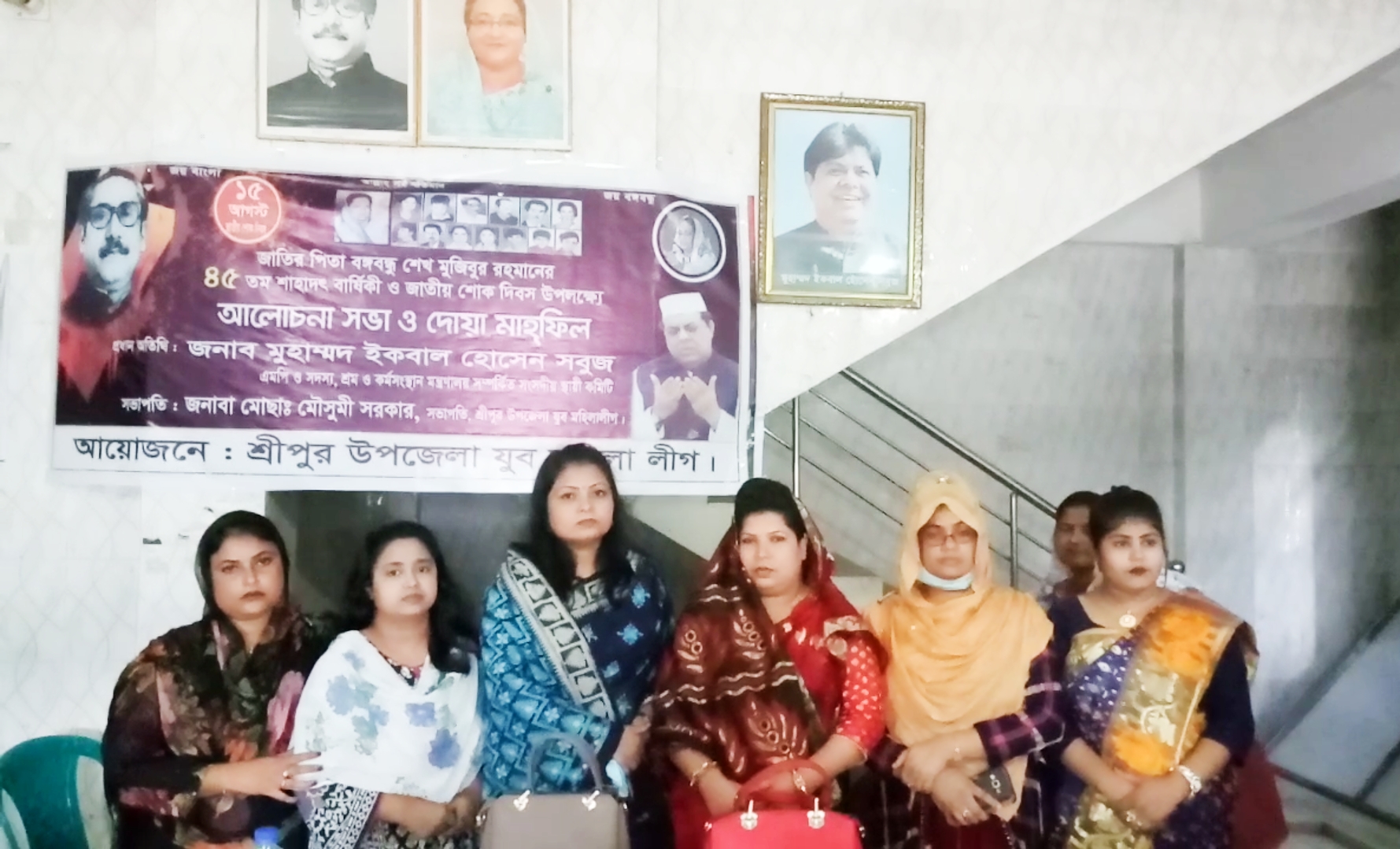 ২৪ আগস্ট সোমবার বিকেলে শ্রীপুর উপজেলা মহিলা যুবলীগের উদ্যোগে শ্রীপুর উপজেলা আওয়ামীলীগের কার্যালয়ে বঙ্গবন্ধুসহ তার পরিবারের সকলের রুহের মাগফেরাত কামনা করা হয়।