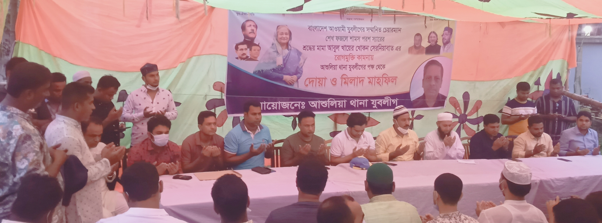 আশুলিয়া থানা যুবলীগ উদ্যোগে যুবলীগের চেয়ারম্যান শেখ ফজলে শামস পরস'র মামার রোগমুক্তির জন্য দোয়া ও মিলাদ অনুষ্ঠিত