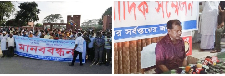 সাভারের আশুলিয়ায় পারভেজ চেয়ারম্যানের মিথ্যা সংবাদ প্রচারের প্রতিবাদে মানববন্ধন ও সংবাদ সম্মেলন