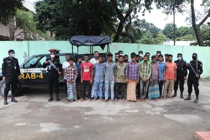 শনিবার (২৪ অক্টোবর) রাতে ঝটিকা অভিযান চালিয়ে আশুলিয়ার বাইপাইল এলাকা থেকে তাদের আটক করা হয়। আটকরা হলেন- জামালপুর জেলার মোঃ বিল্লাল (৩৮), ঢাকা জেলার মোঃ জুয়েল (২৮) মোঃ মইদুল ইসলাম (৩২), জামালপুরের মোঃ সবুজ মিয়া (২৮), ঢাকা জেলার মোঃ শরিফ (২৮), টাঙ্গাইলের মোঃ লিটন (৪৫), ফরিদপুর জেলার মোঃ রবিউল মোল্ল্যা (২৪), গাইবান্ধা জেলার মোঃ আবু তালেব (২০), ঢাকা জেলার মোঃ দিয়াজুল ইসলাম (২০), জামালপুরের মোঃ শিপন (২০), রংপুর জেলার মোঃ আব্দুল আলিম (৩৫), জয়পুরহাট জেলার মোঃ আজাদুল ইসলাম (৫০), রাজবাড়ি জেলার মোঃ সোহেল মোল্ল্যা (৩২), গাইবান্ধা জেলার মোঃ আসাদুল ইসলাম (৩০), ঢাকা জেলার মোঃ এখলাছ (৩৫), মোঃ মঈন মিয়া (২৮), নাটোর জেলার মোঃ মাসুদ রানা (২০), গাইবান্ধা জেলার মোঃ হাবিবুর রহমান (৪৭) ময়মনসিংহ জেলার মোঃ রুবেল মিয়া (৩৩), বরিশাল জেলার মোঃ ফজলে রাব্বি (২২), ও নোয়াখালী জেলার মোঃ রনি ভূঁইয়া (২৫)।