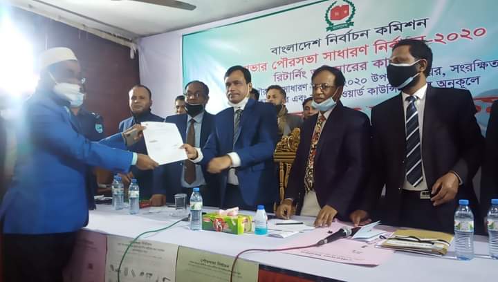 ঢাকা জেলার সিনিয়র নির্বাচন অফিসার ও সাভার পৌর সহকারী রিটার্ণিং অফিসার মো: মুনীর হোসাইন খান এর নিকট থেকে প্রতিক বরাদ্দ নেন তিনি।