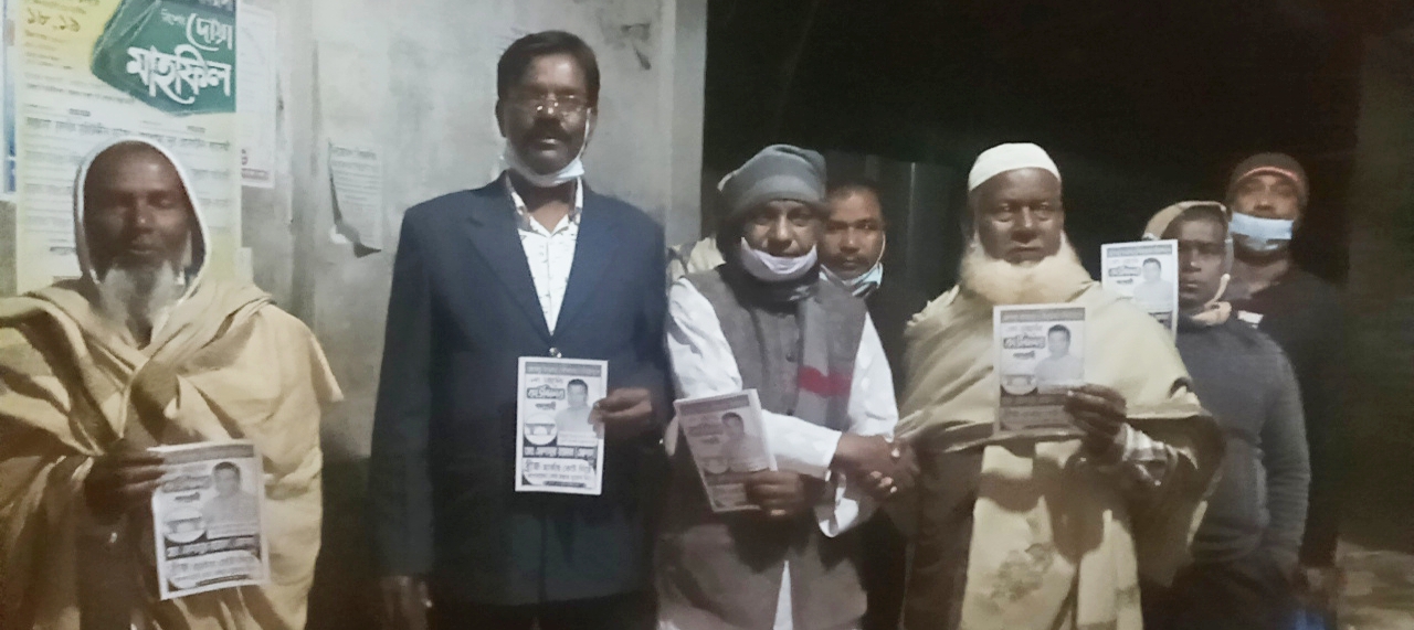 প্রচন্ড শীতকে উপেক্ষা করে ১ নং ওয়ার্ডের কাউন্সিলর প্রার্থী ব্রীজ প্রতিকে ভোটারদের নিকট ভোট প্রার্থনা এরশাদের