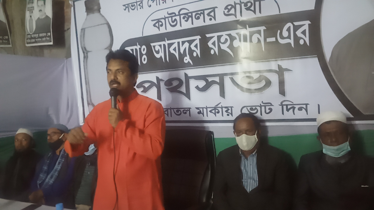সাভার পৌর ১৬ জানুয়ারি নির্বাচনে এক পথসভায় ভোটের মধ্য দিয়ে জয়যুক্ত করার আহবান সমর্থনকারীদের কাউন্সিলর প্রার্থী মোঃ আব্দুর রহমান এর বোতল প্রতিকে