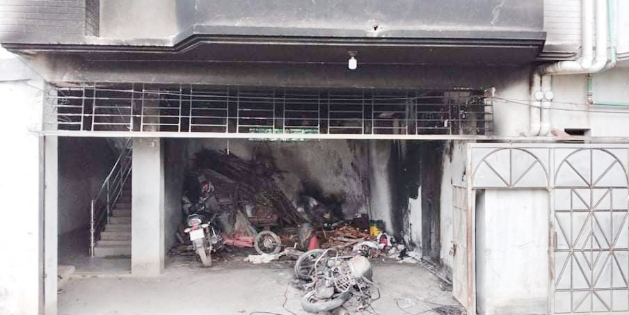 সরেজমিনে সাভার পৌরসভার ৯ নং ওয়ার্ড আওয়ামীলীগের সাংগঠনিক সম্পাদক ব্যবসায়ী হান্নান মিয়ার বাসায় গিয়ে দেখা যায়, পাঁচতলা ভবনের মূল ফটক দিয়ে ঢুকতেই সিঁড়ির পাশের কক্ষের দুটি মোটরসাইকেল একটি সাইকেল সহ বিভিন্ন আসবাবপত্র পরা অবস্থায় দেখা যায়। পাশে আরও একটি ফ্ল্যাটের দরজা পুড়ে গেছে পুরো বাড়ির দেয়ালগুলো ধোঁয়ায় কালো হয়ে আস্তর পড়ে গেছে।