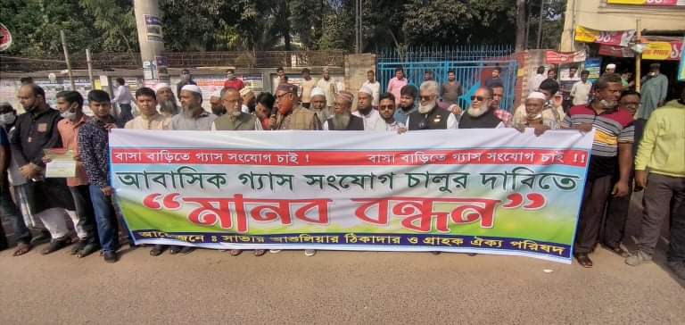 বাসাবাড়িতে আবাসিক গ্যাস সংযোগ চালুর দাবিতে সাভারে মানববন্ধন অনুষ্ঠিত
