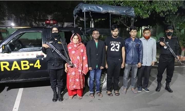 গ্রেপ্তারকৃত আসামীরা হলেন, কুড়িগ্রাম জেলা মোছা; সাহের বানু (৩২), মো. সুমন বাবু, জামালপুর জেলার, মো. খাইরুল ইসলাম (৫০), বরিশাল জেলার, মো. রবিউল ইসলাম রবি (২২) ও চুয়াডাঙ্গা জেলার, মো. হিরন পারভেজ (২১)। র্যাব -৪ এর মিডিয়া অফিসার ও এএসপি মো. মাজহারুল ইসলাম জানান, তারা একটি সংঘবদ্ধ প্রতারক চক্রের সদস্য। তারা দীর্ঘদিন যাবত সাভারে বন্যা সিকিউরিটি সার্ভিস (প্রাঃ) লিঃ নামে অফিস খুলে বিজ্ঞাপন দিয়ে সাধারন লোকজনকে আকৃষ্ট করে। পরবর্তীতে নিরীহ লোকজনদের কাছ থেকে ফরম, ইউনিফরম ক্রয় বাবদ বিভিন্ন অংকের টাকা হাতিয়ে নিত। পরে চাকুরী না দিয়ে অসংখ্যা লোকের এ অর্থ তারা আত্মসাৎ করত। কেউ টাকা ফেরত চাইলে হুমকি সহ বিভিন্ন ভয়ভীতিও দেখাত তারা। তাদের বিরুদ্ধে এক ভুক্তভোগী বাদী হয়ে সাভার মডেল থানায় মামালা দায়ের করেছেন।