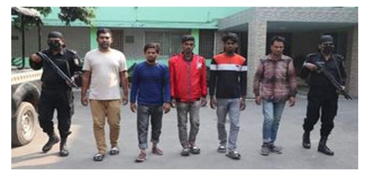 গ্রেফতারকৃতরা হলেন, মো. রাসেল মিয়া (২৩), মো. আইয়ুব আলী (২৩), মো. সুমন মিয়া (২৭), মো. আবু হানিফ মিয়া (৪০), মোঃ সুমন (৩৫)। র্যাব -৪ এর দেওয়া তথ্য মতে, সাম্প্রতিক সময়ে সাভার থনাধীন এলাকায় জলদস্যু, ভূমিদস্যু ও ডাকাত দল কর্তৃক সাধারণ মানুষের জীবন নাশের হুমকি প্রদান, ডাকাতির চেষ্টা, চাঁদাবাজির অভিযোগ পাওয়া যায়।