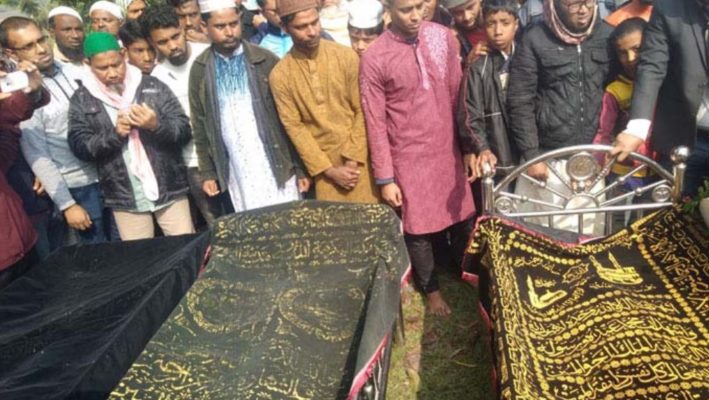চট্টগ্রামের সীতাকুণ্ডে সড়ক দুর্ঘটনায় নিহত বাবা ও দুই মেয়ের পারিবারিক কবরস্থানে দাফন।ছবিঃসত্যের সংবাদ