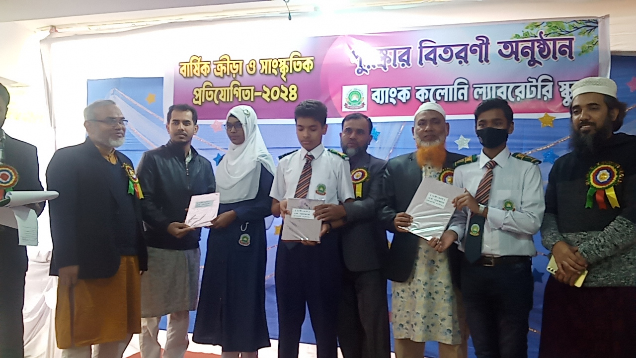 বৃহস্পতিবার সাভার পৌর ব্যাংক কলোনি ক্যাম্পাসে এ পুরস্কার বিতরণ করেন। এসময় উপস্থিত ছিলেন ব্যাংকলোনি ল্যাবরেটরি স্কুলের প্রিন্সিপাল আমিনুর রহমান,কো-অর্ডিনোট রুবিউল ইসলাম ও ব্যাংকলোনী ক্যাম্পাসের আনন্দপুর ল্যাবরেটরি কলেজ'এর প্রিন্সিপাল মো: খালিদ হোসেন উপস্থিত থেকে পুরুস্কার বিতরণ করেন।