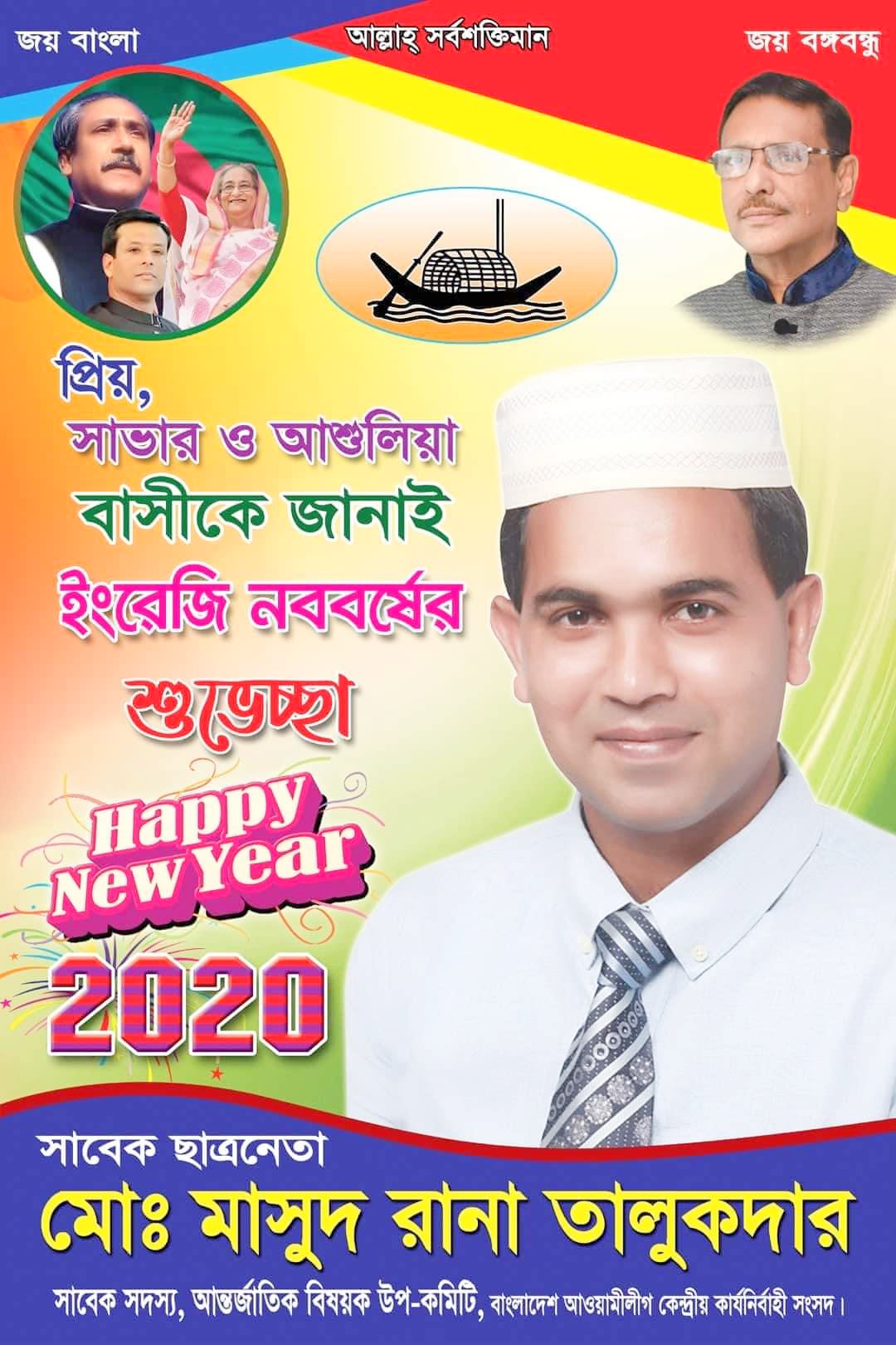 সত্যেরসংবাদঃ সাভার ও আশুলিয়াবাসীকে ইংরেজি ২০২০ নতুন বছর উপলক্ষে শুভেচ্ছা ও অভিনন্দন জানিয়েছেন সাবেক ছাত্রনেতাঃ মাসুদ রানা তালুকদার । তিনি সাভার পৌর এলাকার রাজাশন এলাকার কৃতি সন্তান ও বাংলাদেশ আওয়ামীলীগের কেন্দ্রীয় আন্তর্জাতিক বিষয়ক উপ-কমিটির কার্যনির্বাহী সংসদের সাবেক সদস্য মোঃ মাসুদ রানা তালুকদার।