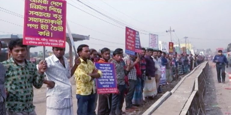 ইটভাটা ভাঙ্গার প্রতিবাদে সাভারে মানববন্ধন কর্মসুচী পালন করেছে বিভিন্ন ইটভাটার মালিক ও শ্রমিকরা।