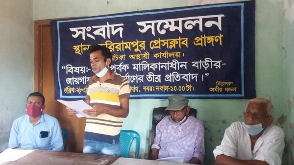 মানিকগঞ্জের হরিরামপুরে মালিকানাধীন জায়গায় ভবন নির্মাণের প্রতিবাদে সংবাদ সম্মেলন মোহাম্মদ আলী,মানিকগঞ্জের হরিরামপুর থেকেঃ : মানিকগঞ্জ জেলার হরিরামপুর উপজেলায় হারুকান্দি ইউনিয়নের ভেলাবাদ গ্রামের মনিন্দ্র বিশ্বাস-হরিদাস বিশ্বাস দুই ভাইয়ের বিরুদ্ধে জোরপূর্বক ভাবে