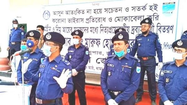 ধামরাইয়ে ঢাকা জেলা পুলিশের উদ্যোগে খাদ্যদ্রব্য সামগ্রী বিতরণ নিজস্ব প্রতিবেদকঃ ঢাকার ধামরাইয়ে হার্ডিঞ্জ স্কুল মাঠ পাঙ্গনে ঢাকা জেলা পুলিশের উদ্যোগে খেটে খাওয়া দিনমজুর দের মাঝে নিত্য প্রয়োজনীয় দ্রব্যসামগ্রী বিতরণ করা