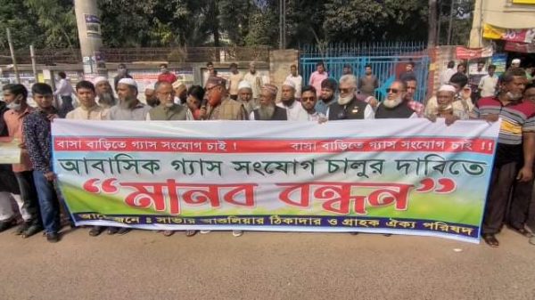 বাসাবাড়িতে আবাসিক গ্যাস সংযোগ চালুর দাবিতে সাভারে মানববন্ধন অনুষ্ঠিত শেখ এ কে আজাদ,রফিকুল ইসলাম জিলুঃ সাভার আবাসিক গ্যাস সংযোগ চালুর দাবিতে সাভার তিতাস গ্যাস অফিসের সামনে বিক্ষোভ ও মানববন্ধন করেছে