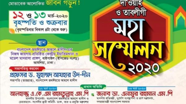 বিজ্ঞপ্তিঃ- সাভারের আশুলিয়ায় বাংলাদেশ জমঈয়তে আহলে হাদিসের দা’ওয়াহ মহাসম্মেল স্থগিত ***করোনা ভাইরাসের জন্য জনসমাগম নিষেধাজ্ঞা হওয়ায় বাংলাদেশ জমঈয়তে আহলে হাদিসের উদ্যােগে আশুলিয়ায় দুই দিন ব্যাপি দা’ওয়াহ ও তাবলীগী মহাসম্মেল স্থগিত