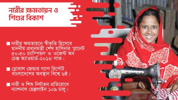 সত্যের সংবাদঃ নারীর ক্ষমতায়নে বাংলাদেশ আজ উন্নয়নশীল বিশ্বে রোল মডেল। এর স্বীকৃতি হিসেবে মাননীয় প্রধানমন্ত্রী শেখ হাসিনাকে ইউএন উইমেন ‘প্লানেট ৫০:৫০ চ্যাম্পিয়ন’ ও গ্লোবাল পার্টনারশিপ ফোরাম ‘এজেন্ট অব চেঞ্জ অ্যাওয়ার্ড-২০১৬’