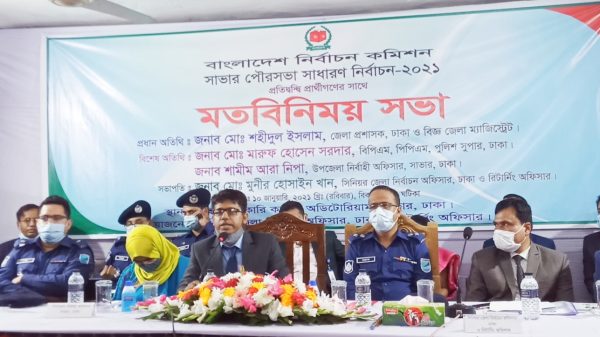 সাভার পৌর নির্বাচনে সমান অধিকার নিয়ে সকল প্রার্থীরা নির্বাচন আচরণবিধি মালা মেনে কাজ করার অনুরোধঃ জেলা প্রশাসক শহীদুল ইসলাম শেখ এ কে আজাদ,সাভার থেকেঃ সাভার পৌরসভা সাধারন নির্বাচনে প্রতিদ্বন্দ্বিতা প্রার্থীর