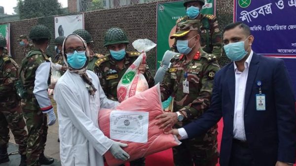 আশুলিয়ায় সেনাবাহিনীর সহায়তায় খাদ্য সামগ্রী ও শীত বস্ত্র বিতরন জিল্লু,সাভার থেকেঃ সাভারের আশুলিয়ায় সেনাবাহিনীর শীতকালীন প্রশিক্ষণ ২০২০-২০২১ উপলক্ষ্যে প্রায় শতাধিক শীতার্ত পরিবারের মাঝে খাদ্য সামগ্রী ও শীত বস্ত্র বিতরণ করা