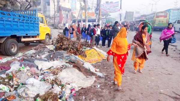 সাভার গেন্ডা বাসস্ট্যান্ডে ময়লা-আবর্জনার স্তূপ দূর্গন্ধে পথচারীরা