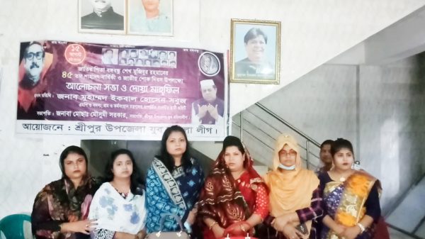 শ্রীপুরে বঙ্গবন্ধুর শাহাদাত বার্ষিকী উপলক্ষে যুব মহিলালীগের শোক দিবস পালন মোহাম্মদ আদনান মামুন, নিস্বজ প্রতিবেদক- গাজীপুরের শ্রীপুরে যুব মহিলালীগের উদ্যেগে বঙ্গবন্ধু শেখ মুজিবুর রহমানের ৪৫ তম শাহাদাত বার্ষিকী জাতীয় শোক