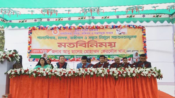 মুজিব বর্ষে অঙ্গীকার নিয়ে সাভারে বাল্যবিবাহ, মাদক,জঙ্গীবাদ ও সন্ত্রাস নির্মূলে সচেতনমূলক মত বিনিময়সভা অনুষ্ঠিত শেখ এ কে আজাদ,সাভার থেকেঃ সাভার উপজেলা প্রশাসনের উদ্যােগে মুজিব বর্ষে অঙ্গীকার সাভার উপজেলা মাঠ প্রাঙ্গনে