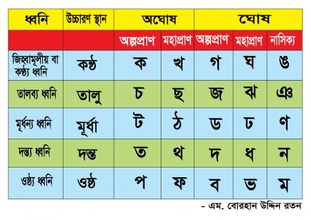 অল্পপ্রাণ ও মহাপ্রাণ ধ্বনি : যে ধ্বনি উচ্চারণের সময় নিঃশ্বাস জোরে সংযোজিত হয় বা ফুসফুস থেকে বের হওয়া বাতাসের জোর বেশি থাকে, তাকে মহাপ্রাণ ধ্বনি বলে। আর যে ধ্বনিগুলোতে বাতাসের