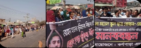 সাভারে স্কুল ছাত্র রোহানের হত্যার ঘটনায় মানববন্ধন করেছে এলাকাবাসী শেখ এ কে আজাদ ও রফিকুল ইসলাম জিল্লু,সাভারঃ ঢাকার সাভারে রোদেলা মডেল স্কুলের ছাত্র রোহানুর ইসলাম রোহান কে হত্যার ঘটনায় অভিযুক্তদের