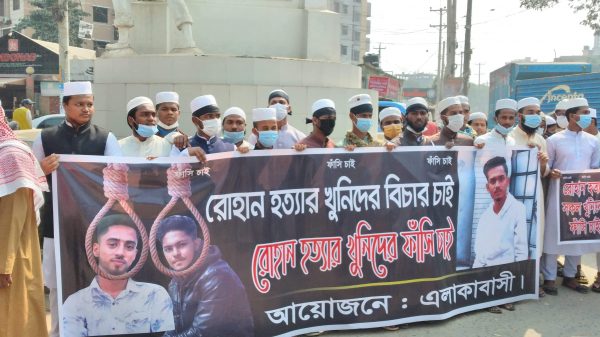 সাভারে স্কুল ছাত্র রোহান হত্যার ঘটনায় অভিযুক্তদের ফাঁসির দাবিতে প্রেসক্লাবের সামনে মানববন্ধন সত্যেরসংবাদঃ সাভারে কিশোর গ্যাংয়ের হাতে খুন হওয়া স্কুল শিক্ষার্থী রোহান হত্যাকান্ডে জড়িতদের ফাঁসির দাবিকে মানববন্ধ করেছে নিহতের পরিবার,