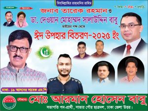 সাভার পৌর ছাত্রদলের উদ্যোগে ঢাকা-১৯ সাভার আসনের সাবেক সংসদ সদস্য ও বিএনপির শীর্ষ স্থানীয় নেতা ডা:দেওয়ান মো: